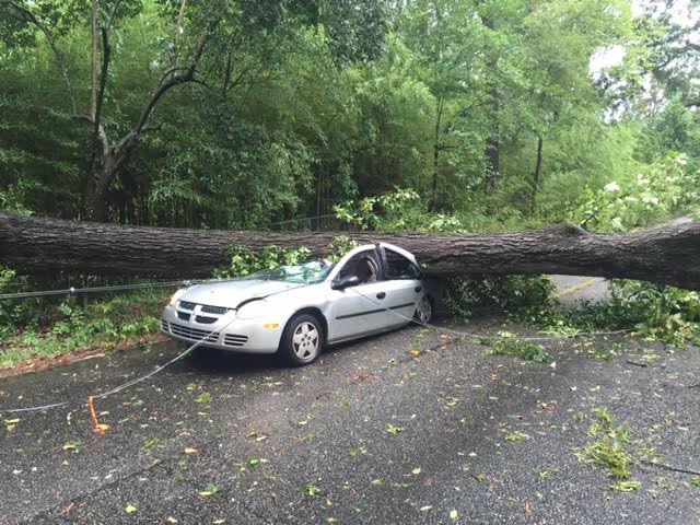 Across town, Cloverdale was also hit hard. A tree fell on this car on Woodley Road. There were no injuries and amazingly, those inside of the car were able to exit.